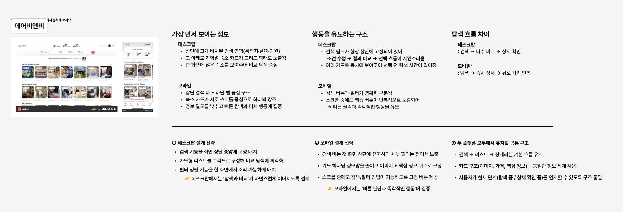 구글 맵, 유튜브, 에어비앤비 중 하나를 선택해 데스크탑과 모바일 화면을 비교 분석해보세요.