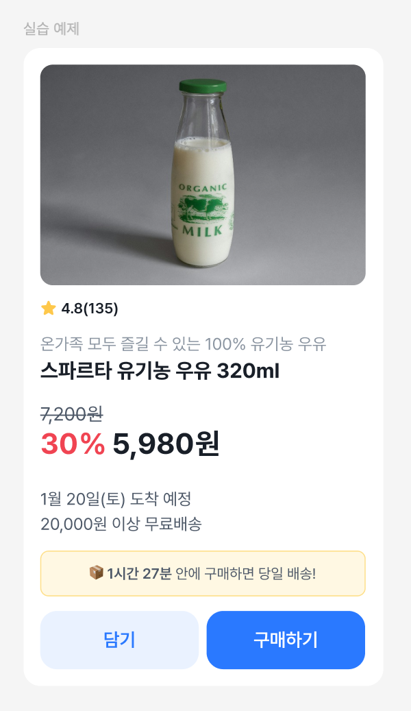 - 이미지/텍스트/가격 등 기본 정보 배치 순서